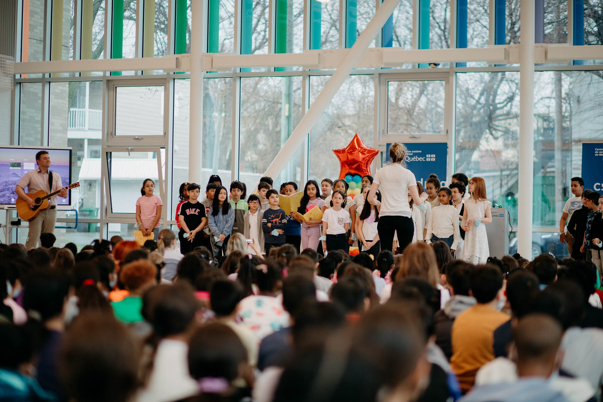 Le mercredi 27 avril, le Centre de services scolaire de Montréal (CSSDM) a inauguré officiellement l’école primaire Saint-Bernardin, située au 2950, rue Jarry Est, dans le quartier Saint-Michel. Des artistes de l’École nationale de cirque ont offert une prestation haute en couleur qui met en valeur les arts du cirque.